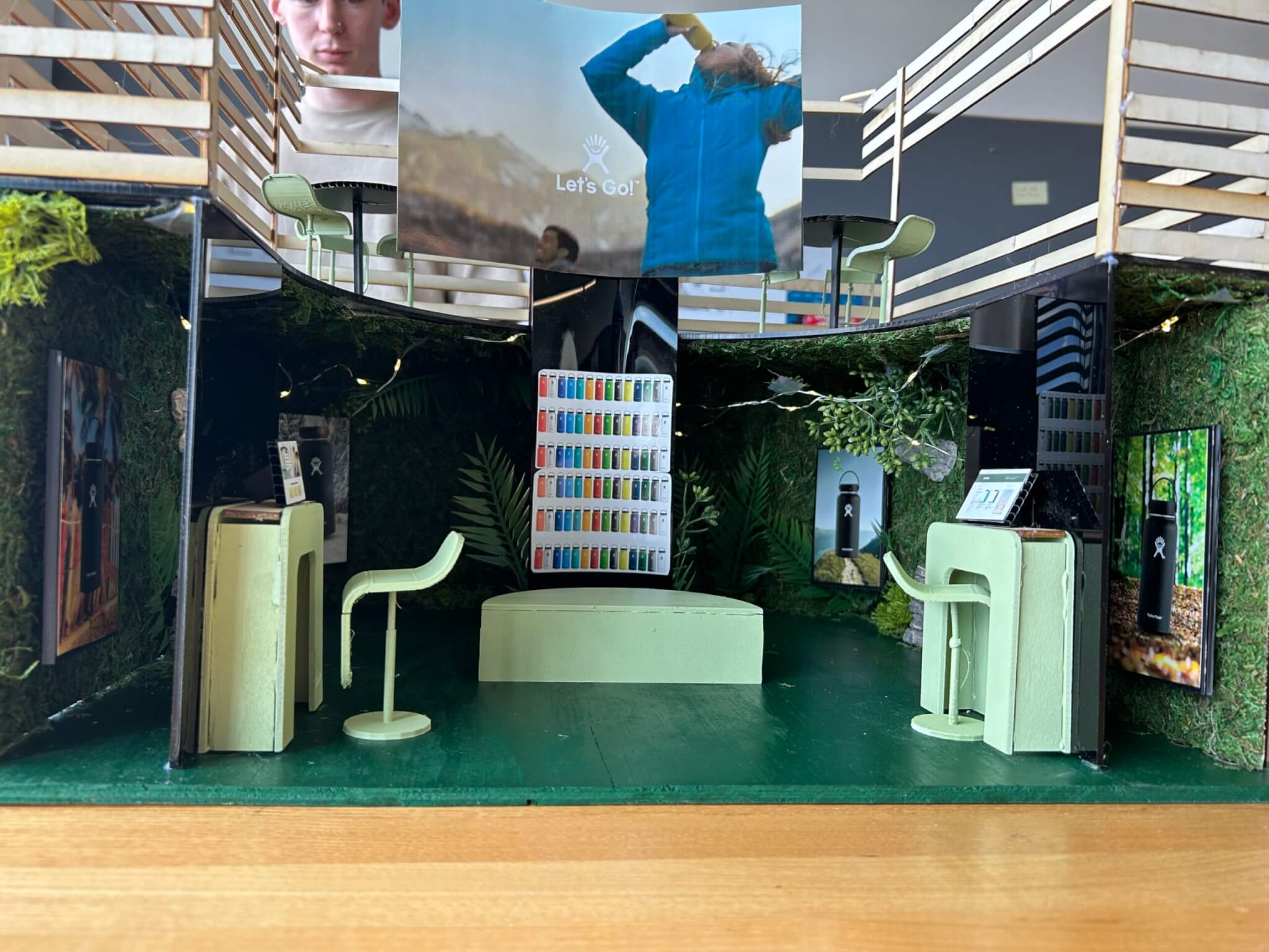 Condit continues to collaborate with MSU industrial design students, most recently in the Spring of 2024. For this project, students worked in teams of two to select a brand, iterate their design, and produce a 3D model under the supervision of Condit designers and sales professionals. This assignment included an updated requirement beyond the above: to create a scale model of the exhibit. Techniques included 3D printing, sewing, laser cutting/etching, screen printing, etc. to accomplish the task.
