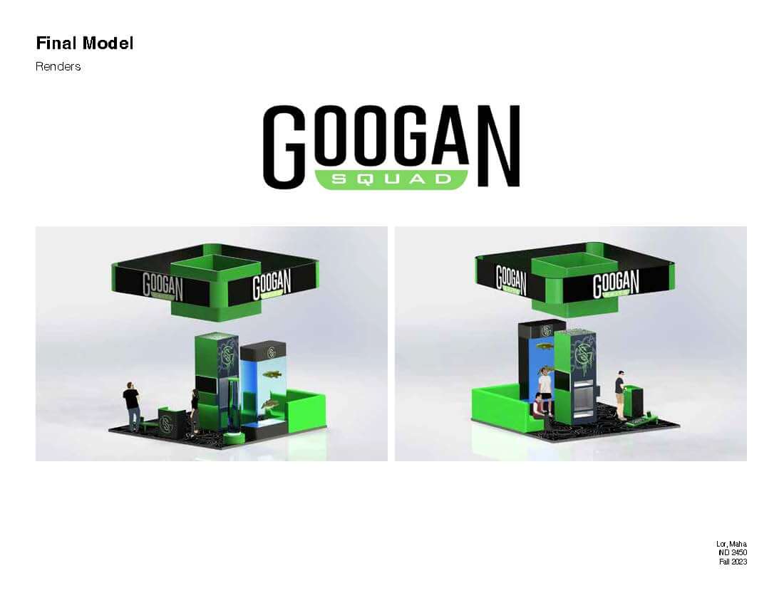 As the capstone project for the course, the prompt indicated students should, “Design a trade show exhibition space according to real-world criteria provided by Condit. The exhibition space should translate the company look, feel, and message into multiple dimensions. It should be strongly aesthetic, functional, experiential, and practical for implementation (build and install). Human interaction and traffic flow should be comfortable and intuitive.”
