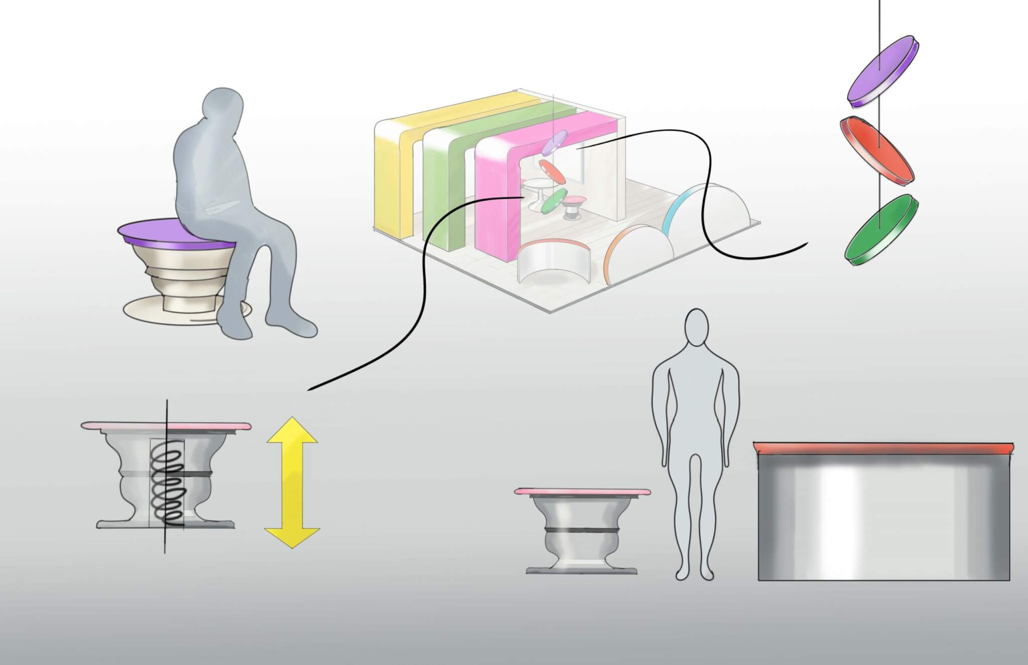 - Color rendering that emphasizes the unique form/character, in context (human scale)