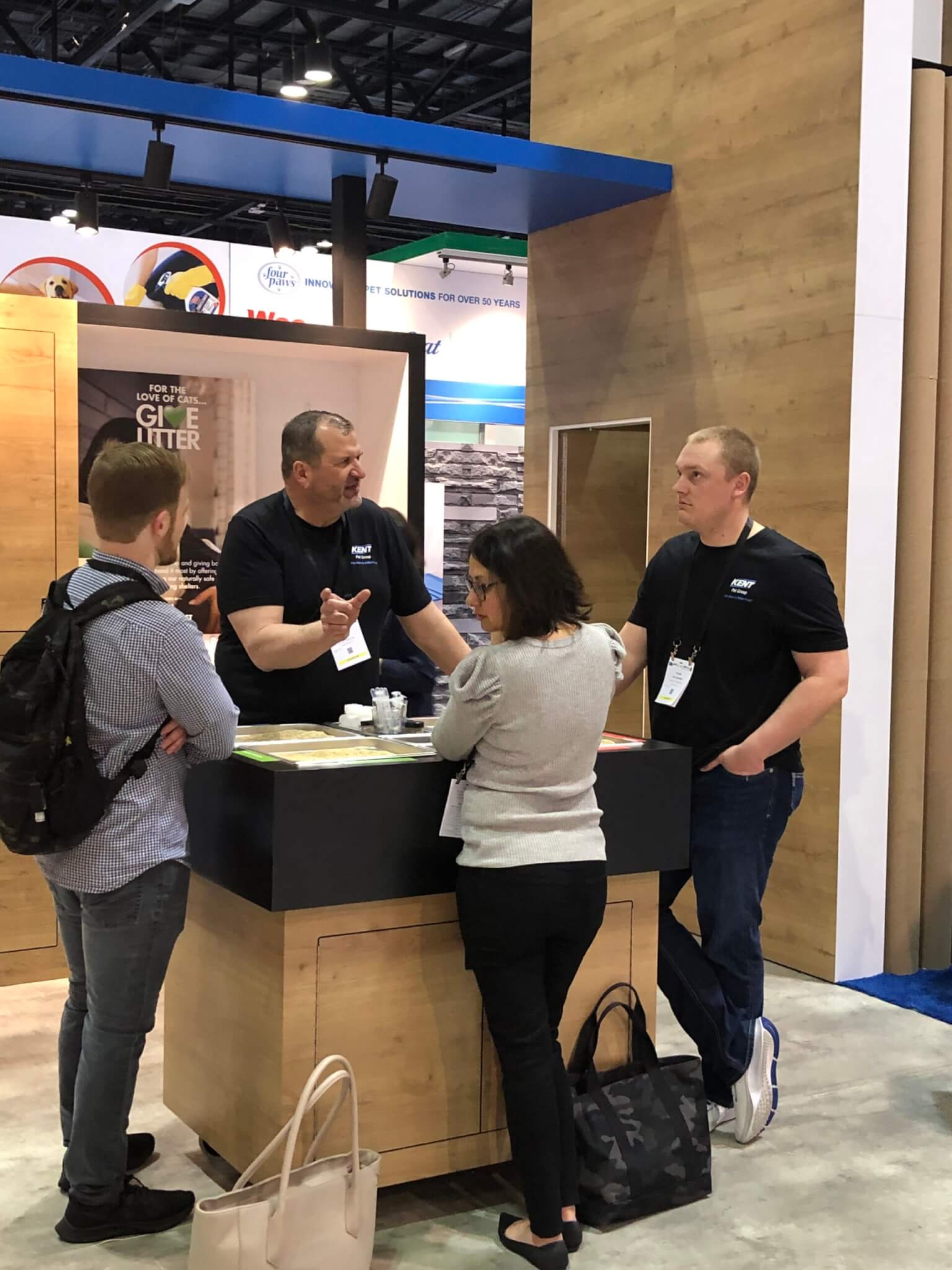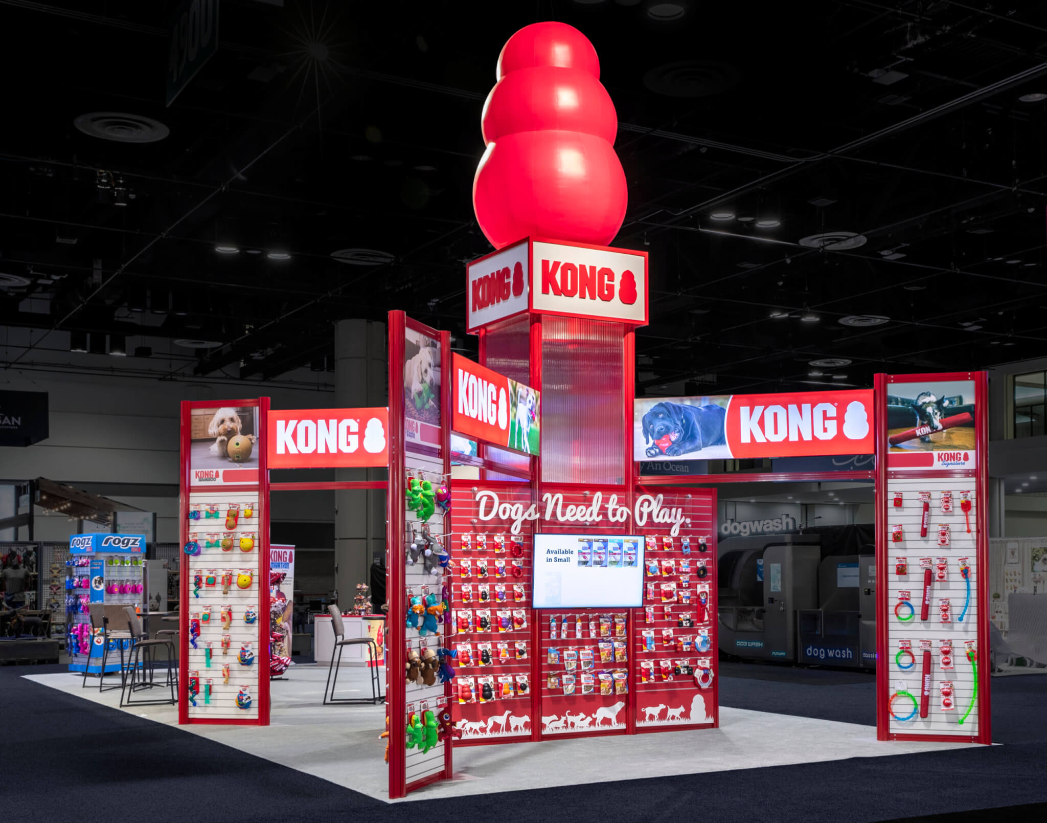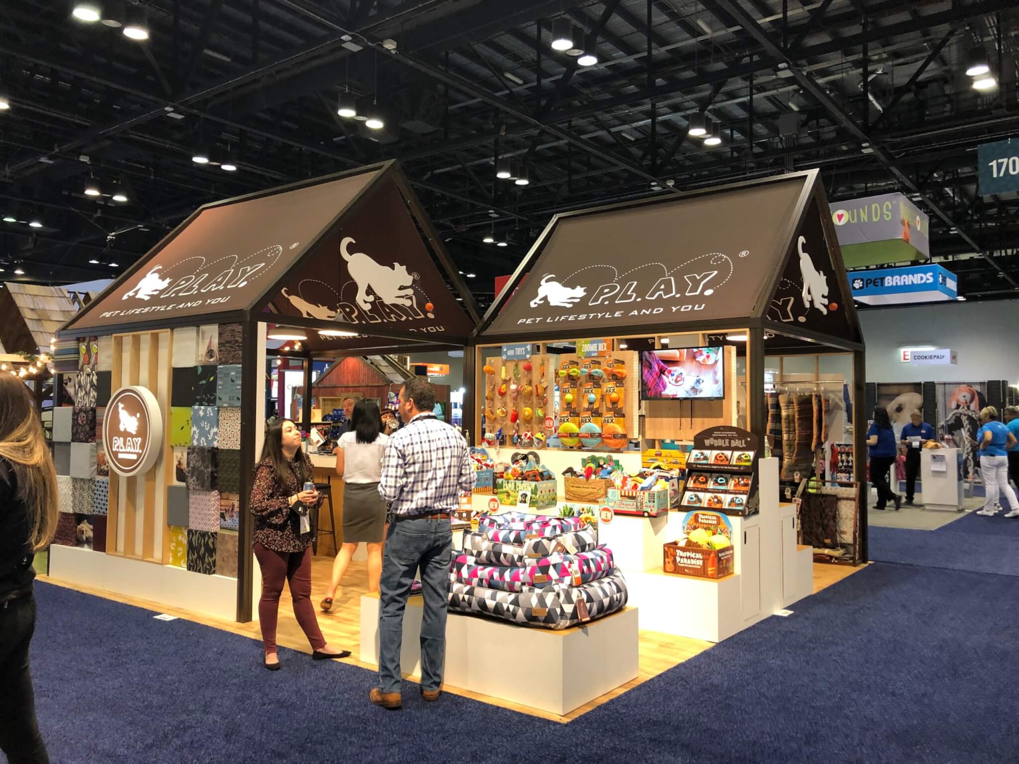 Pet industry conferences, expos, and other events are known for being pet-friendly environments. It’s essential that your booth is welcoming to both human and animal guests. This can mean anything from implementing basic safety measures with trash cans, flooring, and furniture to designing and installing playful and engaging architecture for pets and their people!