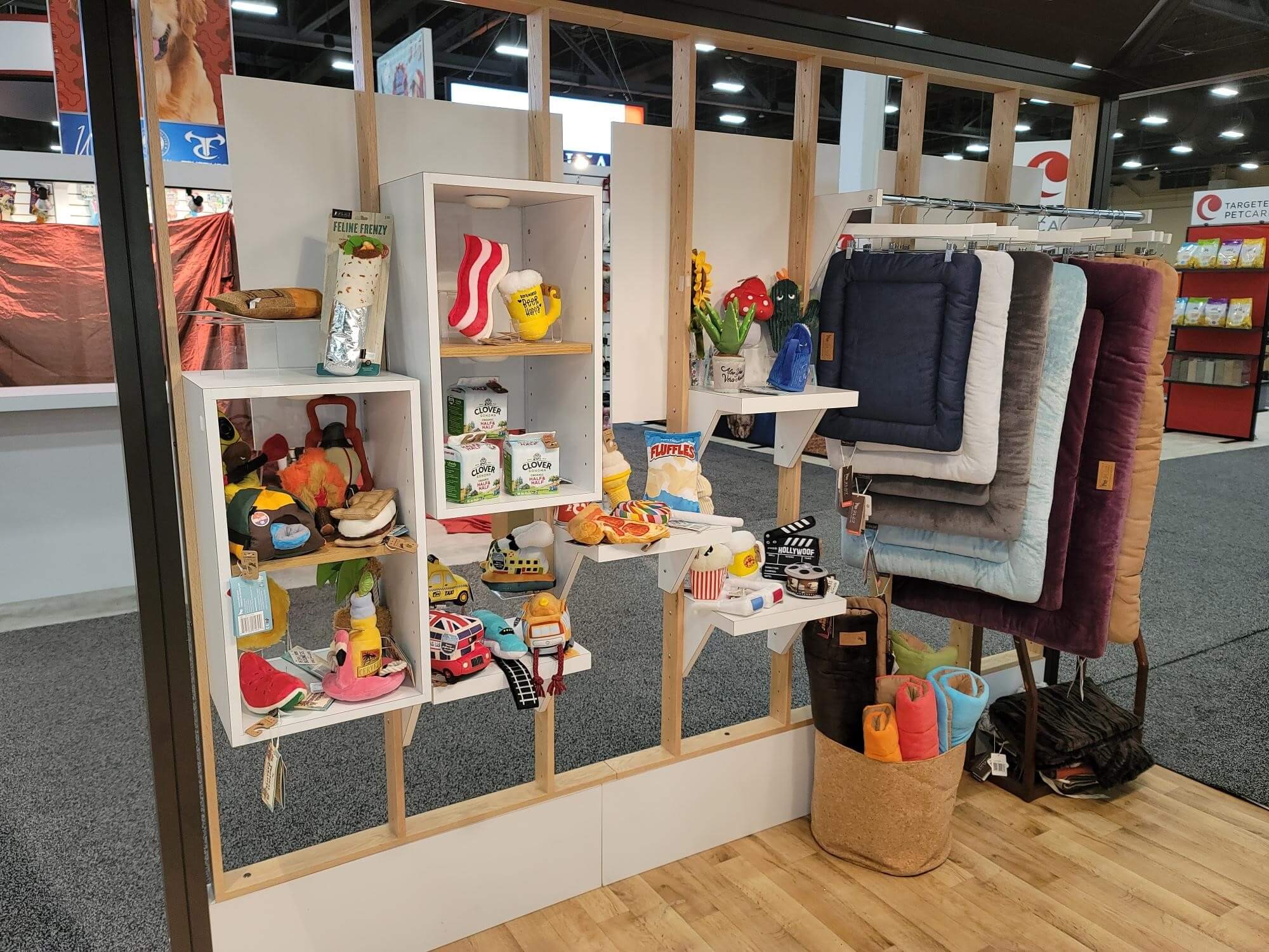 Your pet products should be front and center in your exhibit. Whether established in the market or freshly launched, they are the crown jewel of your brand and your booth. From treats to toys, show attendees and your booth visitors will want to quickly access these items.
