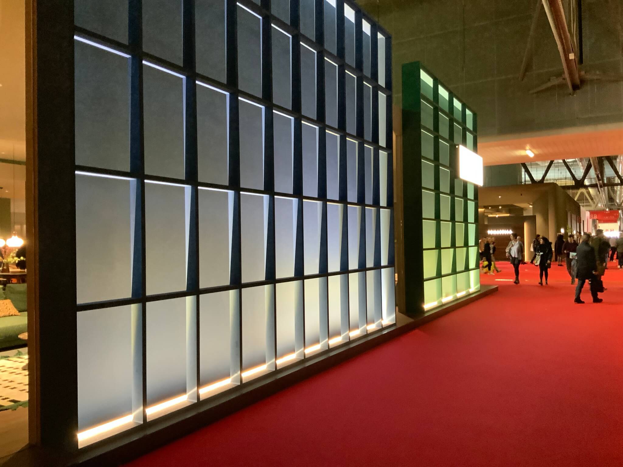 Providing visual and tactile stimulation, many booths displayed or hung loose fabrics, draping, and samples to both shield and entice. For some exhibitors, especially in the furniture industry, this was a masterful technique to showcase swatches and product options.